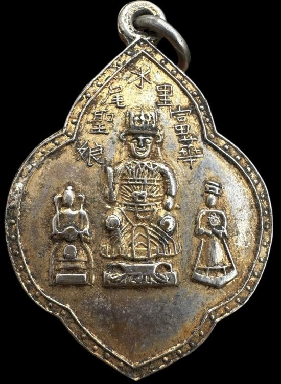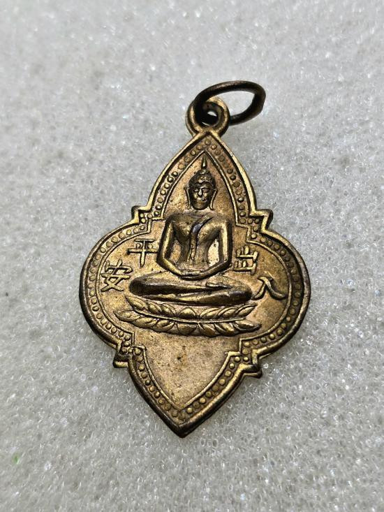 เคาะเดียวแดง เหรียญหลวงพ่อโต(ซำปอกง) วัดกัลยาณมิตร หนังสือจีน ปี2490 เนื้อทองแดงกะไหล่ทอง ห่วงเชื่อม หลังแบบ |
