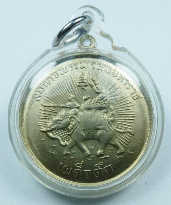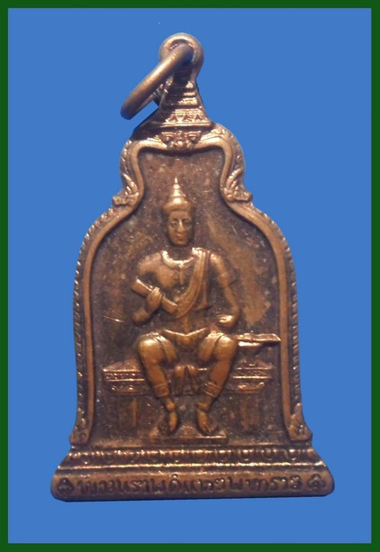 เหรียญพระนเรศวร เนื้อทองแดง วัดป่าเลไลย์ สุพรรณบุรี ปี13 |