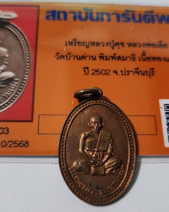 (( ปี 2502 )) หลวงปู่ศุข วัดปากคลองมะขามเฒ่า หลวงพ่อเอีย ปี 2502 ปลุกเสก ชัยนาท ทองแดง พร้อมบัตรรับรองอุ่นใจไม่ต้องวัดใจสภาพพระแท้ |
