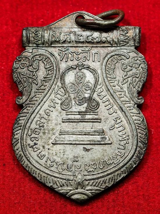 +++วัดใจ+++ เหรียญเสมาที่ระลึกในงานผูกพัทธสีมาฝังลูกนิมิต วัดทุ่งลาดหญ้า จ.กาญจนบุรี ปี 2479 |
