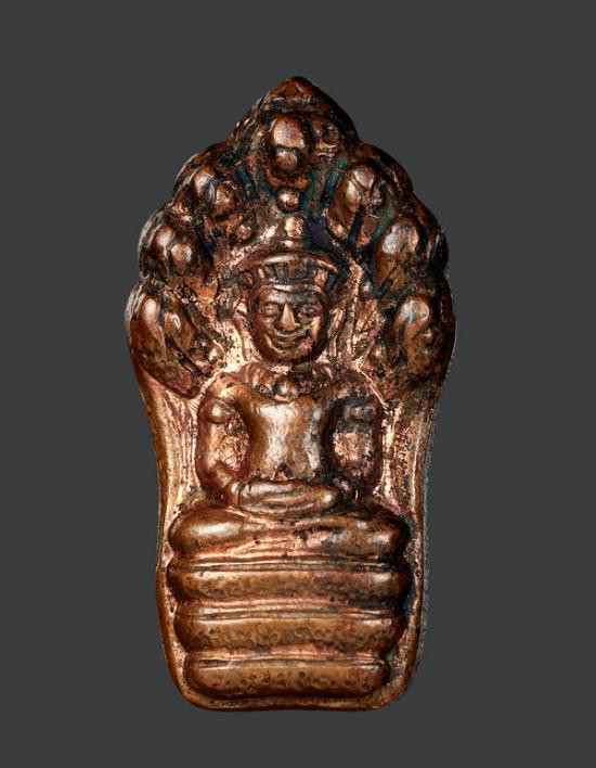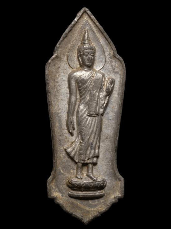 พระท่ากระดานพิมพ์กลีบบัว หลวงพ่อนารถ วัดศรีโลหะราษฎร์บำรุง จ.กาญจนบุรี เนื้อตะกั่วสนิมแดง ปี พ.ศ.2520 สวย |