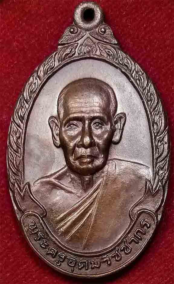 เหรียญหลวงปู่หนู วัดทุ่งแหลม จ.ราชบุรี ( รุ่นยกช่อฟ้า ) เนื้อทองแดง ปี 2523 |