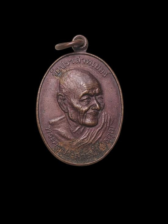 เหรียญหลวงพ่อผาง วัดอุดมคงคาคีรีเขต รุ่นตำรวจภูธรจัดสร้าง (ตุ้มหูยายซิ้ม) ปี2519 เนื้อทองแดง จ.ขอนแก่น พร้อมบัตรG |