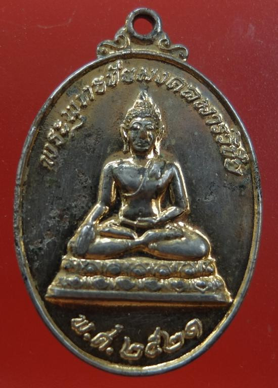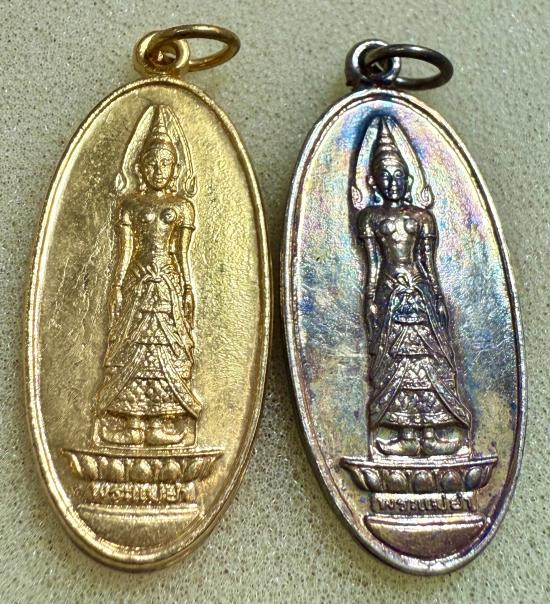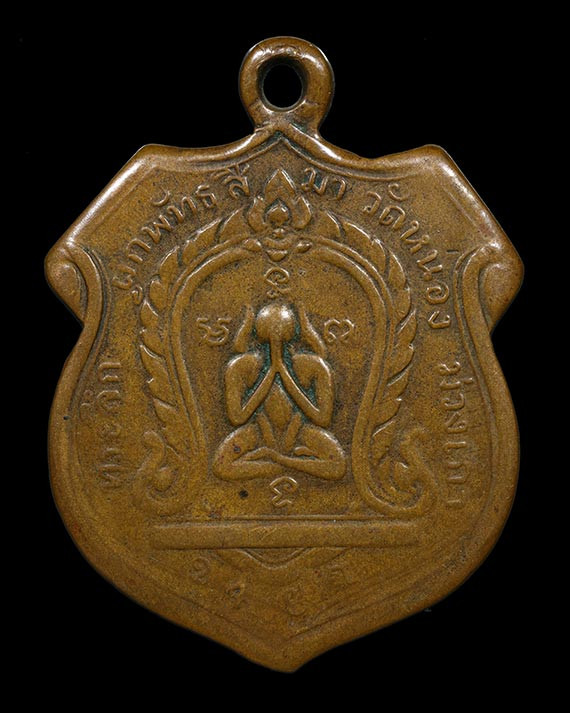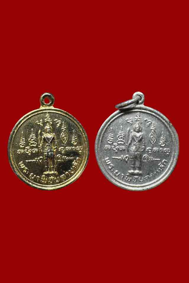 เหรียญเม็ดแตง หลวงพ่อโต วัดบางพลีใหญ่ใน เนื้อเงินลงถม (เคาะเดียว) |