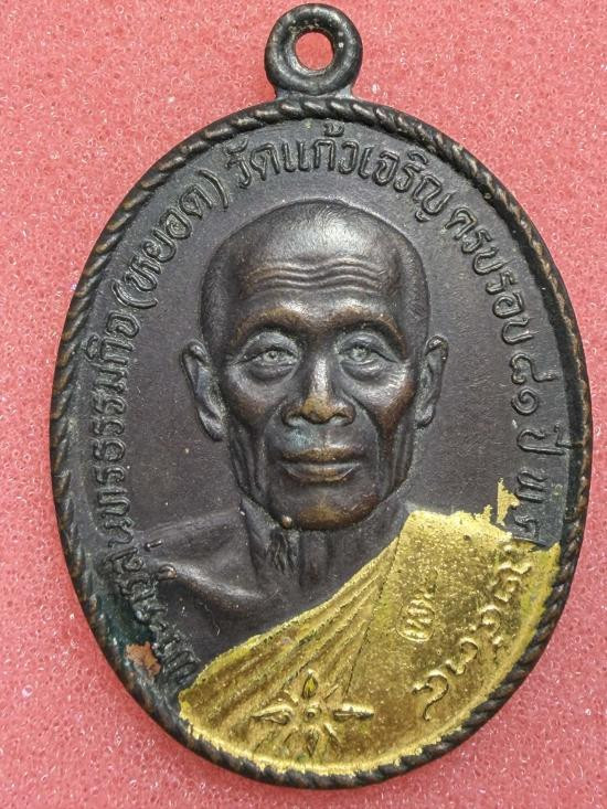 เหรียญหลวงพ่อหยอด วัดแก้วเจริญ รุ่นทรัพย์ล้นเหลือ นะ เมตตา ระงับภัย ทาทอง ชัดเจน สภาพสวย |