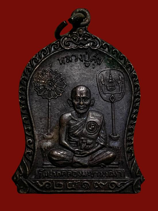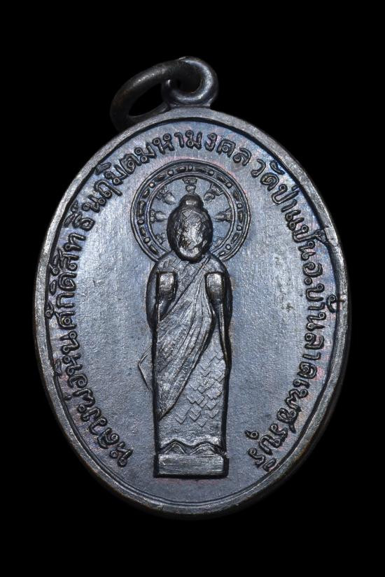 เหรียญ พระพุทธบุพพาภิมงคล หลังสิงห์เจ้าพ่อดำ วัดบุพพาราม ปี 2519 |