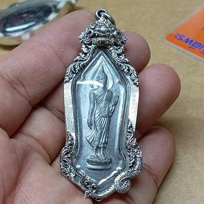หลวงปู่ขาว รุ่น 2 พิมพ์หน้าหนุ่ม ปี2511 เนื้ออัลปาก้าชุบนิเกิ้ล วัดถ้ำกลองเพล อุดรธานี |