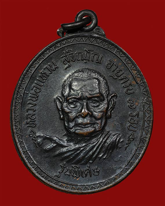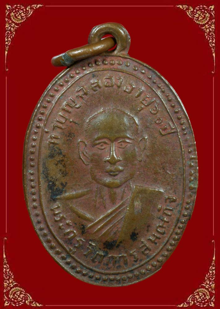 เหรียญหลวงพ่อจวน วัดหนองสุ่ม จ.สิงห์บุรี รุ่นที่ระลึกในงานผูกพัทธสีมา ปี 2518 เนื้อทองแดง |