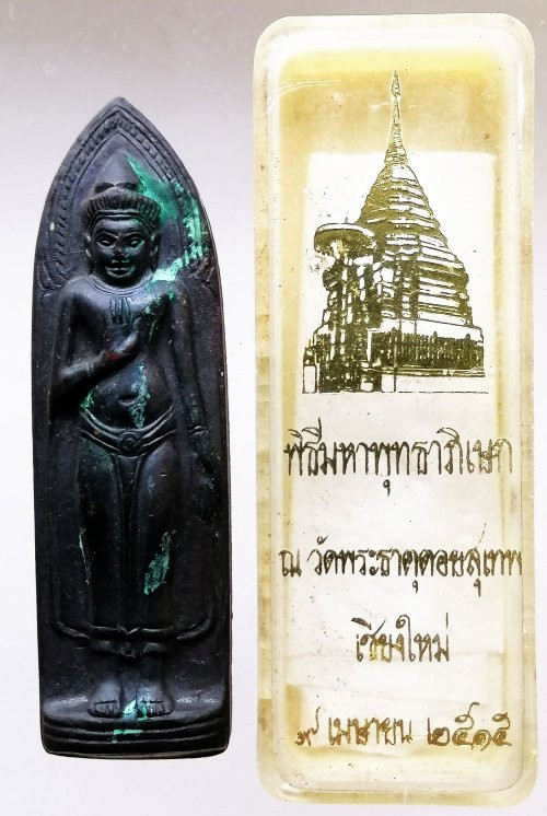 << วัดใจ >> พระร่วงหลังรางปืน วัดพระธาตุดอยสุเทพ จ.เชียงใหม่ สร้างปี2515 (เจดีย์จม) เนื้อทองแดงรมดำ สภาพสวย พร้อมกล่องวัดเดิม ๆ |