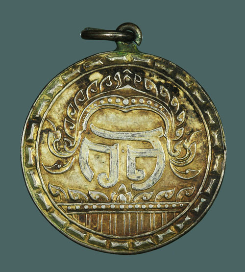 เหรียญอักษรย่อ ว.ส เนื้อเงินกะหลั่ยทอง ข้างกระบอก หูเชื่อม สวยๆ |