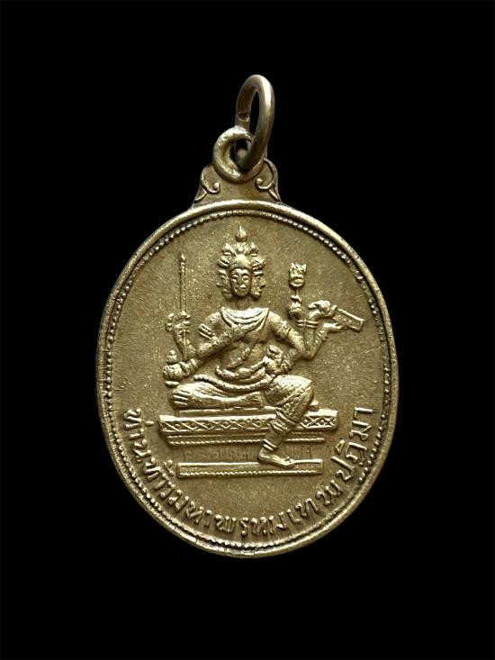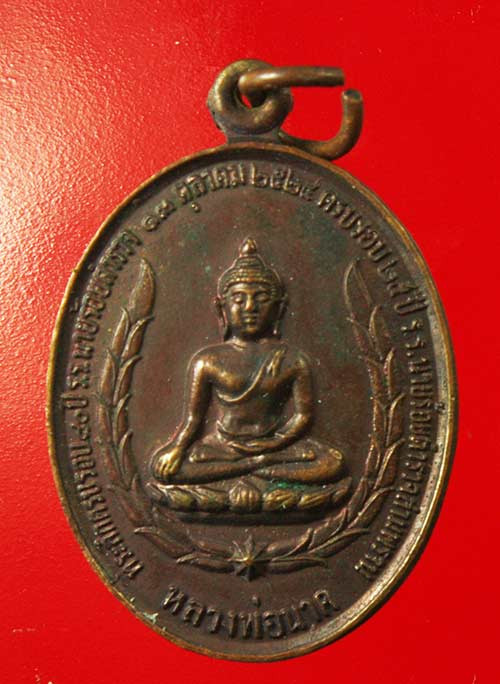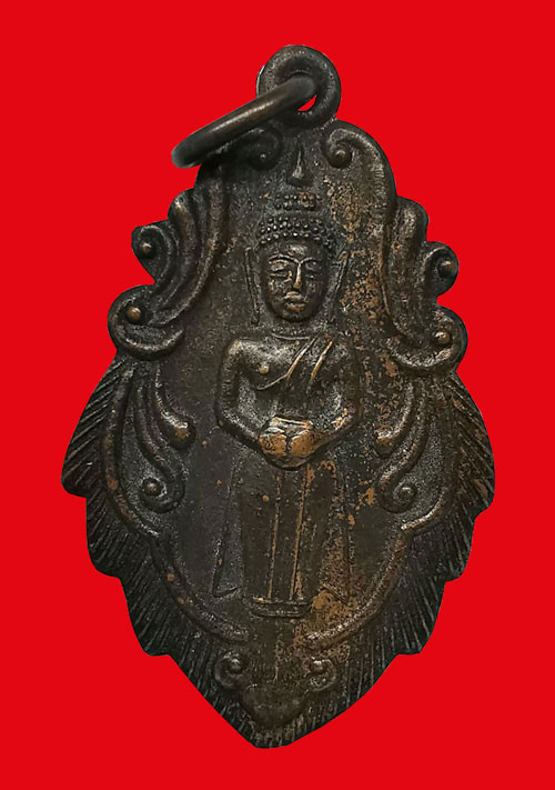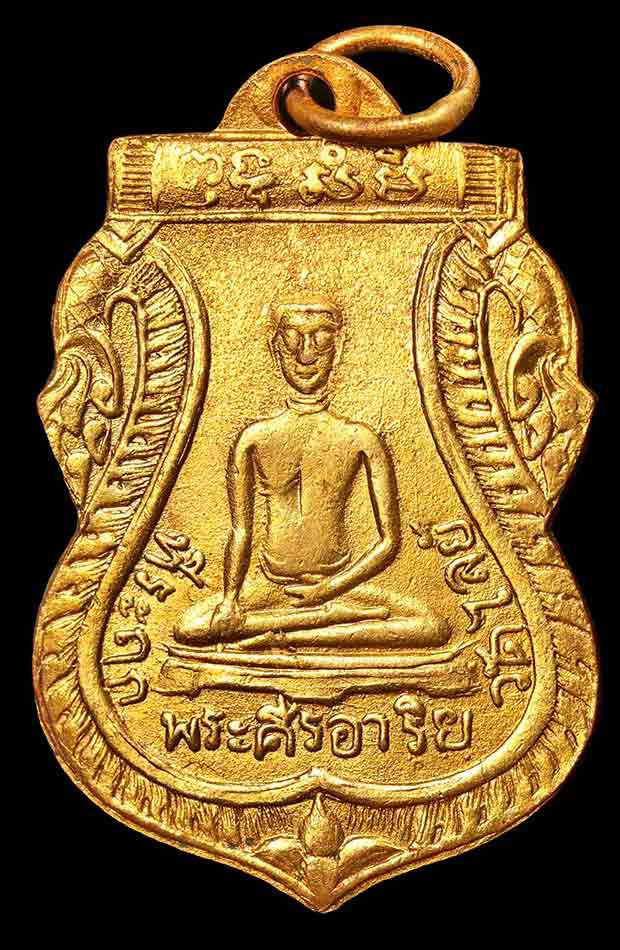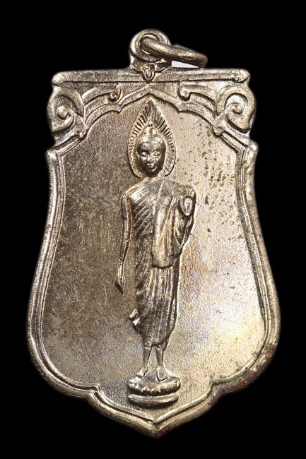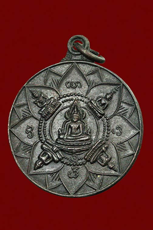 เหรียญ พระปัญจะพุทธามหามงคล ด้านหน้าออกแบบเป็นรูปพระพุทธประจำบ้านเมืองห้าพระองค์ ตรงกลางเป็นพระพุทธชินราช อนุสรณ์ครบรอบ 25 ปี ธนาคารศรีนคร พ.ศ.2518 |