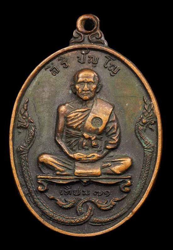 เหรียญ พญานาคคู่ สิริจันโท วัดบรม ปี 24กว่า ( ห่วงเชื่อม ขอบข้างกระบอก ) แต่ห่วงเชื่อมชำรุด มีเจาะรู |