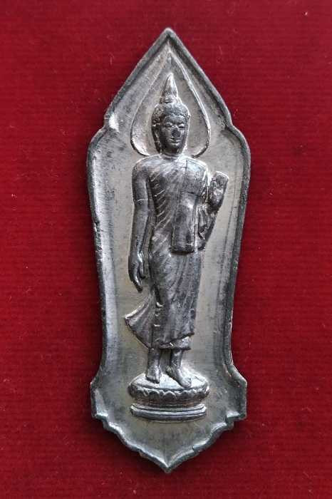 พระลีลา 25 พุทธศตวรรษ เนื้อชินตะกั่ว ปี 2500 พิมพ์มีเข็ม สวยแดงเคาะแรก |
