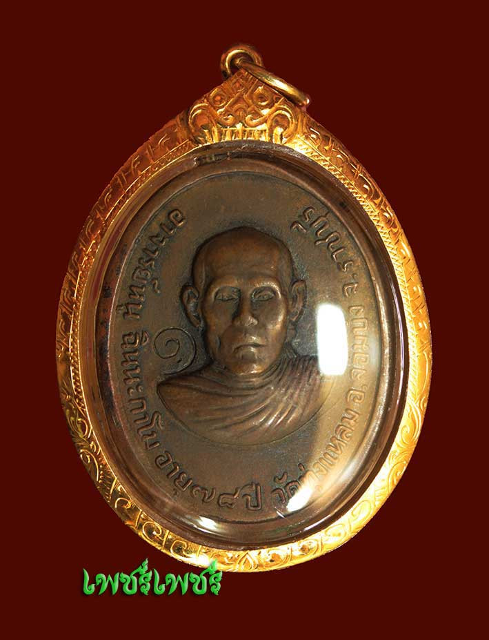 เหรียญหลวงพ่อฮวด วัดดอนโพธิ์ทอง เนื้อทองแดงกะไหล่ทอง ห่วงเดิม ปี2517 จ.สุพรรณบุรี + บัตรG-pra สภาพสวยเดิมค่ะ |
