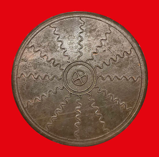 เหรียญหลวงปู่เทียน วัดโบสถ์ หลังพระพุทธ ปี 2508 เนื้อทองแดงผิวไฟ ออกที่วัดบางแพรกใต้ นนทบุรี |