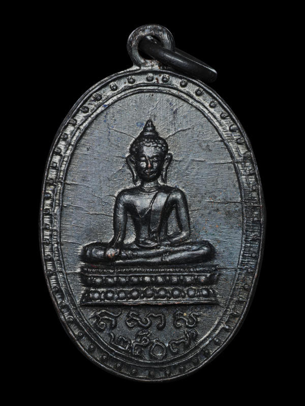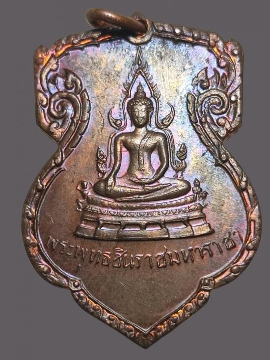 เหรียญพระพุทธชินราชหลังพานพระศรีและอกเลา ปี 2496 เนื้อกะไหล่เงิน วัดพระศรีฯ จ.พิษณุโลก |