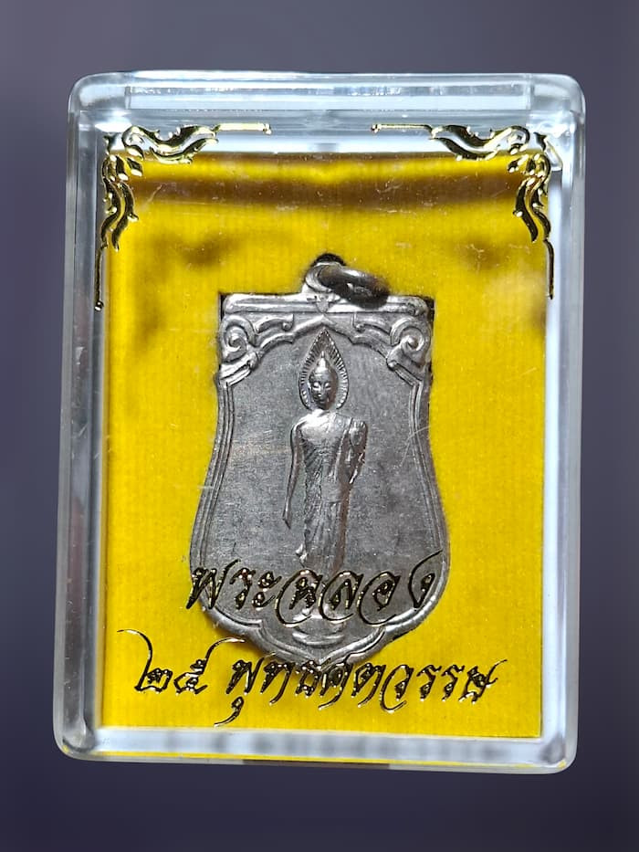 เหรียญหลวงพ่อหิน วัดเขาพระยาเดินธง ลพบุรี รุ่น2 เนื้ออัลปาก้าชุบนิเกิ้ล เลี่ยมพลาสติก |