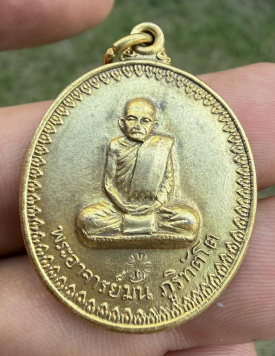 เหรียญพระอาจารย์มั่น ภูริทัตโต พระอาจารย์ฝั้น วัดป่าอุดมสมพร จ.สกลนคร ปี2514 รุ่น17 เนื้อทองแดงกะไหล่ทอง พิมพ์นิยมสายบาตรยาว โค๊ตดอกจันทร์ แจกกรรมการ |