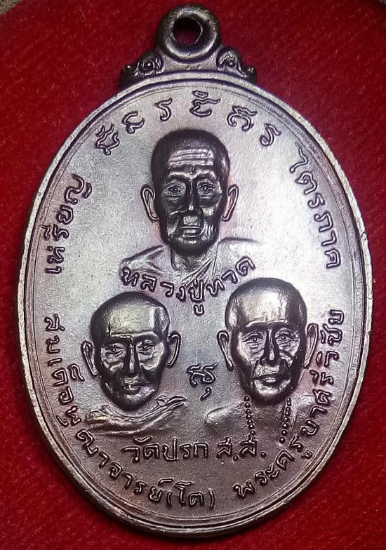 เหรียญ ไตรภาคี(หลวงปู่ทวด สมเด็จโต ครูบาศรีวิชัย) วัดปรกสุธรรมาราม สมุทรสงคราม ปี 2519 |
