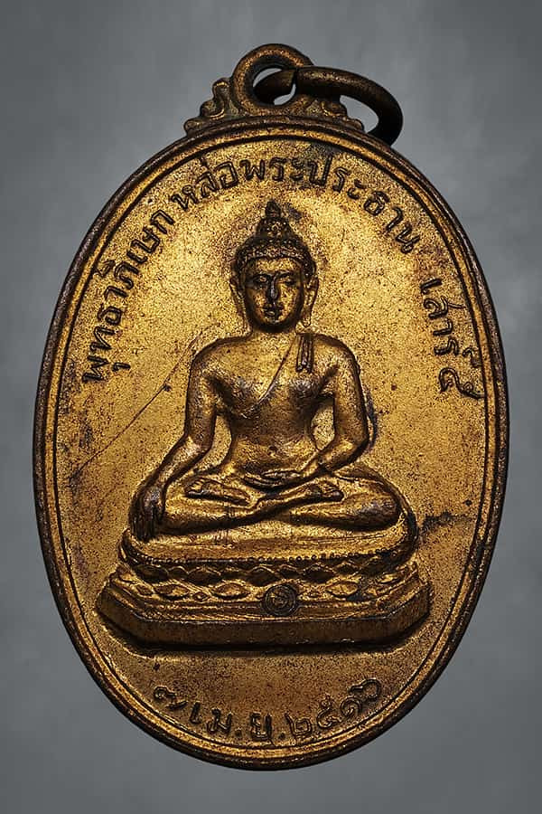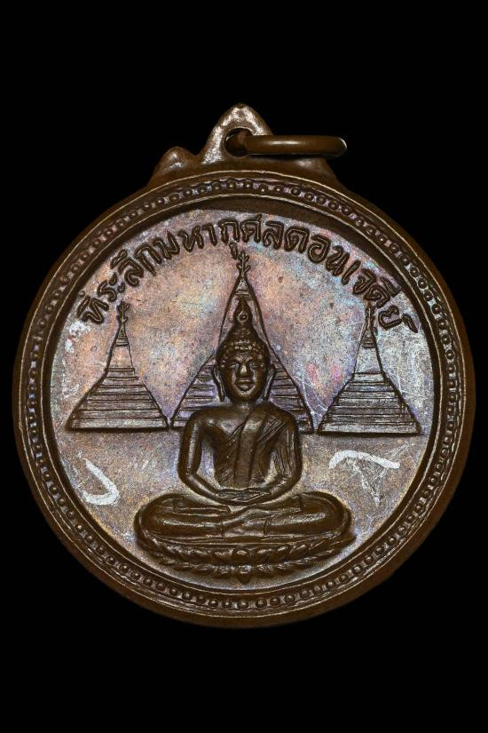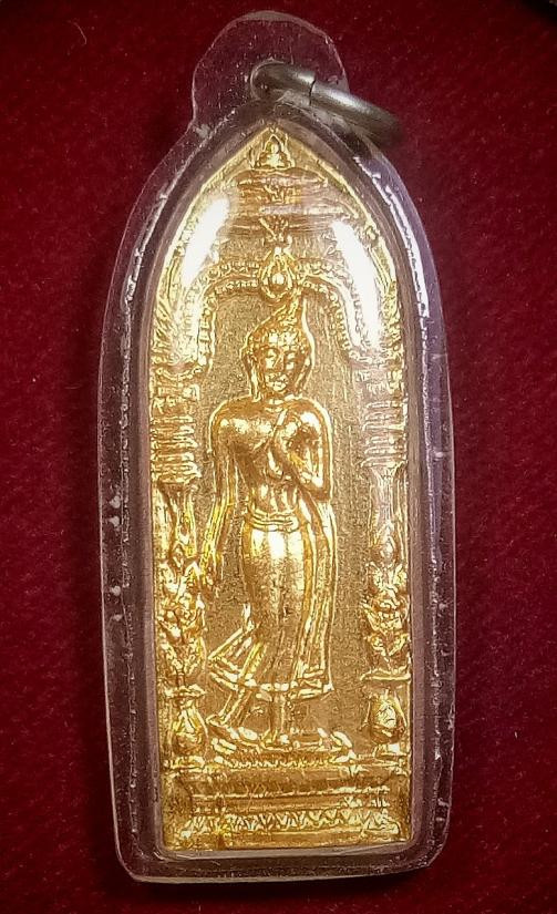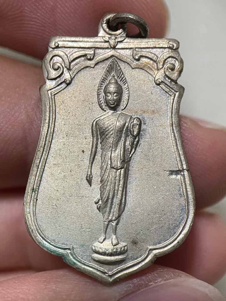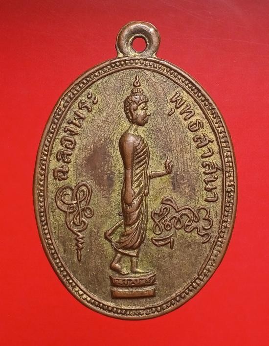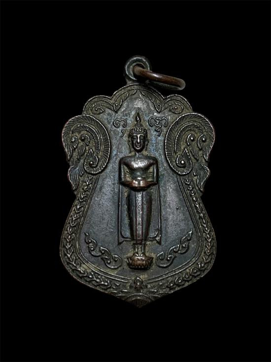 เหรียญ พระลีลากำแพงนิ้ว หลวงพ่อขอม วัดไผ่โรงวัว สุพรรณบุรี ปี 2505.....กะไหล่ทอง |