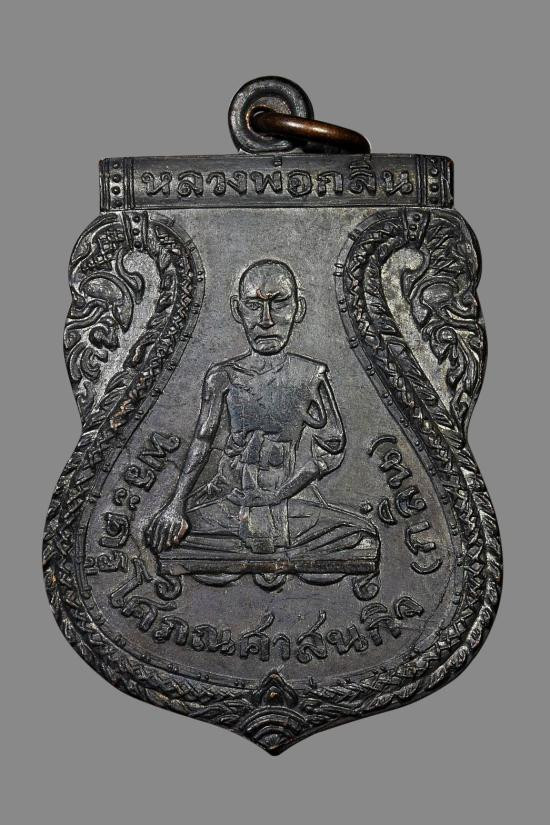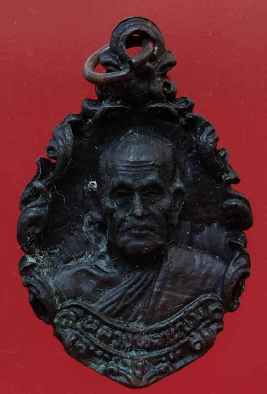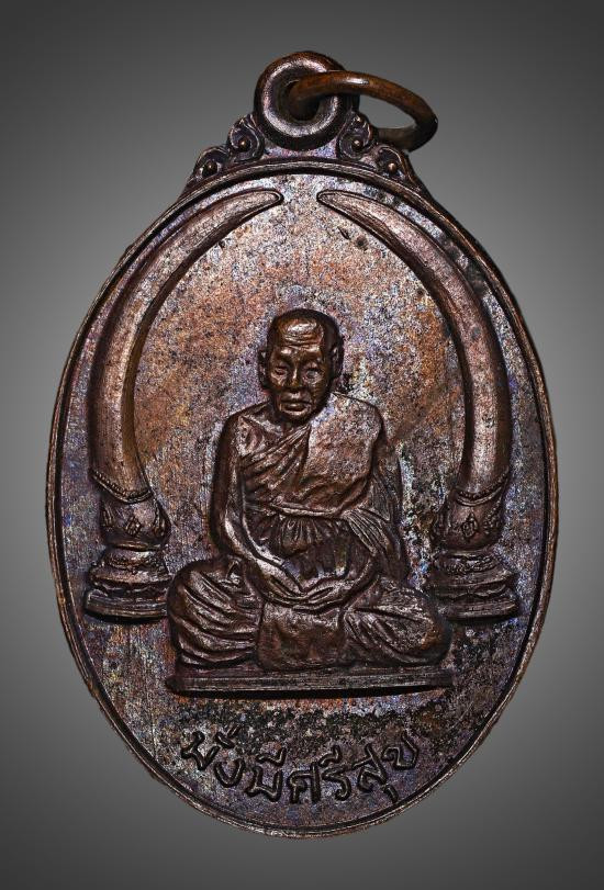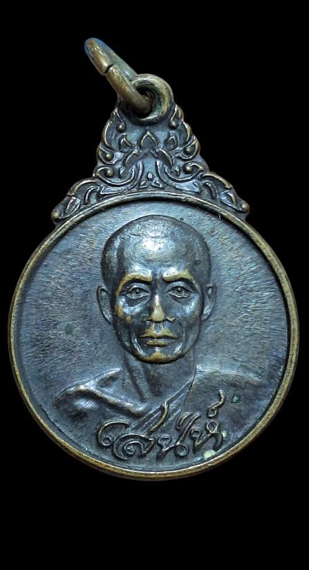 เหรียญรูปเหมือน งาคู่ หลังสิงห์ เนื้อทองแดง หลวงพ่อหอม วัดซากหมาก ระยอง ปี2520 |
