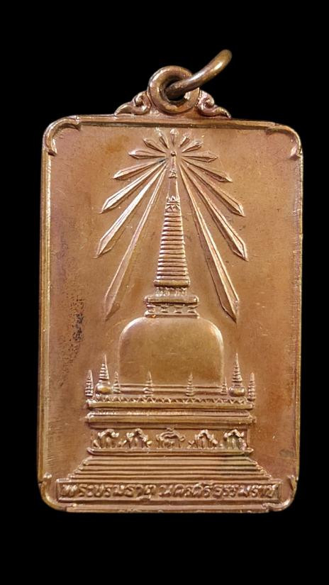 **100.** เหรียญพระพุทธมิ่งเมืองทักษิณ หลังพระบรมธาตุ นครศรีธรรมราช ในหลวงเสด็จพระราชดำเนินเททอง ปี 2522 |