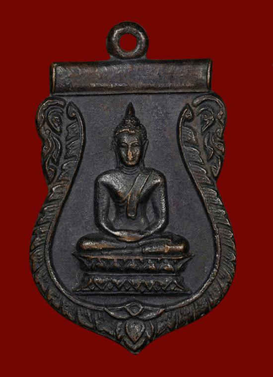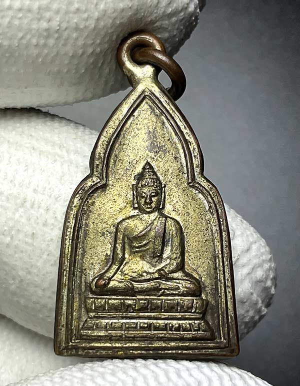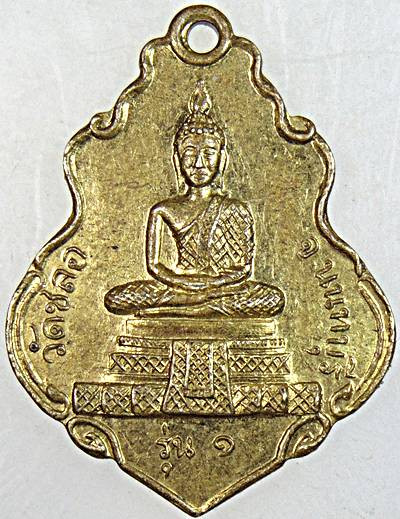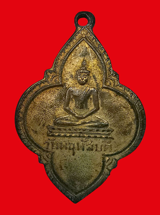 เหรียญห้าเหลี่ยม หลังลายเซ็น พระพุทธเชียงแสน จอมพล ป.พิบูลย์สงคราม ปี ๒๔๙๕ เนื้อทองแดง |