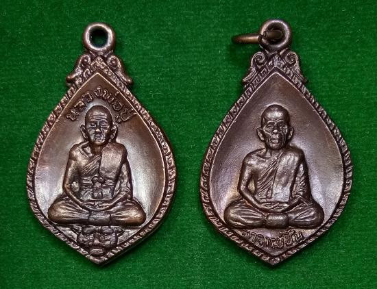 เหรียญหยดน้ำพ่อจงทองแดงกะหรั่ยทองสวยสมบูรณ์ปี..2486.+บัตรจี |