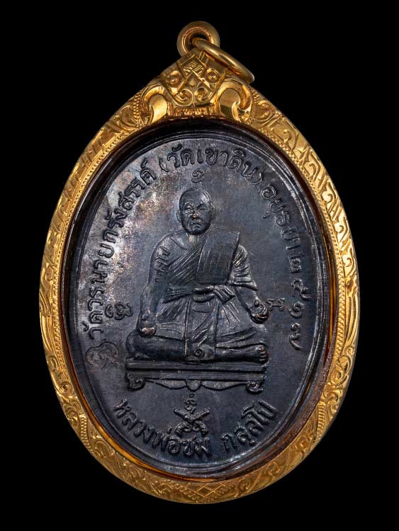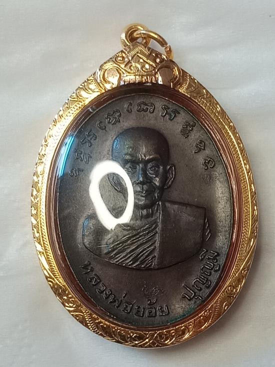 เหรียญหลวงพ่อย้อย วัดอัมพวัน รุ่นให้ลาภ คุ้มภัย พิมพ์ใหญ่ ตอกโค๊ต พร้อมเลี่ยมทอง |