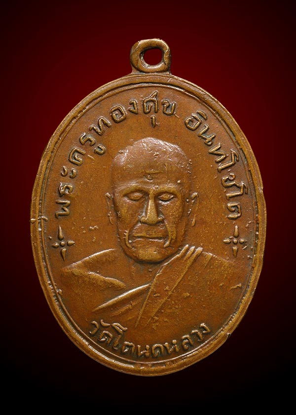 เหรียญหลวงพ่อทองศุข วัดโตนดหลวง (วัดเพรียงสร้าง) จ.เพชรบุรี ปี 2498 เนื้อทองแดง |
