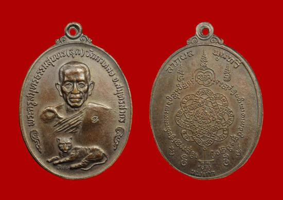 เหรียญหลวงพ่อบุญเที่ยง รุ่นแรก ปี 2520 เนื้อทองแดง จ.อุบลราชธานี |