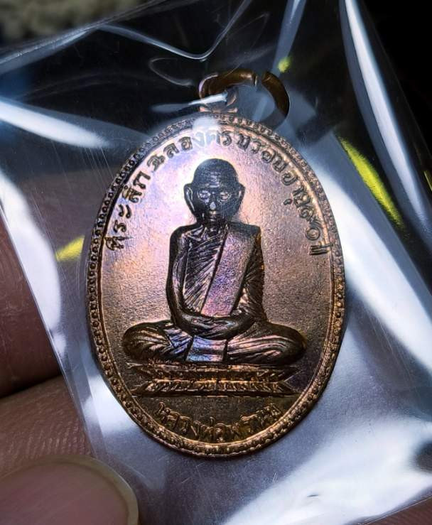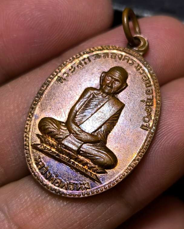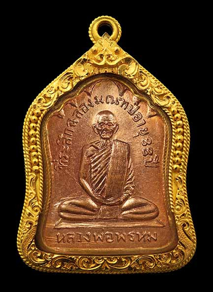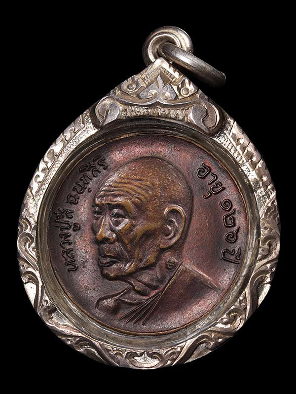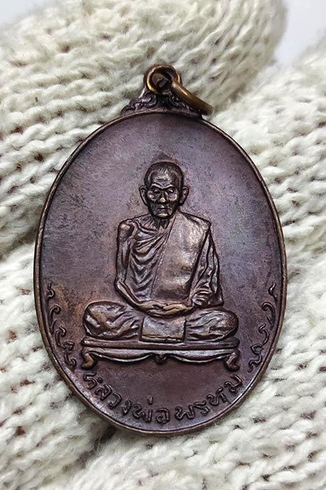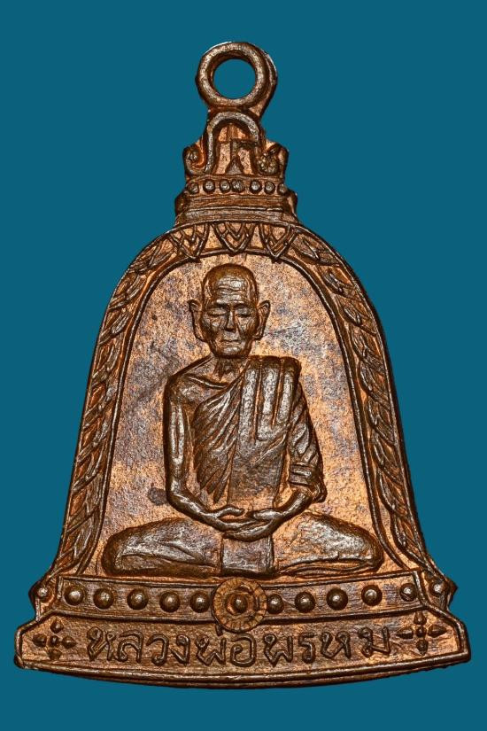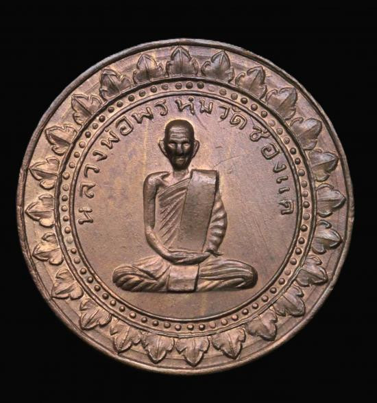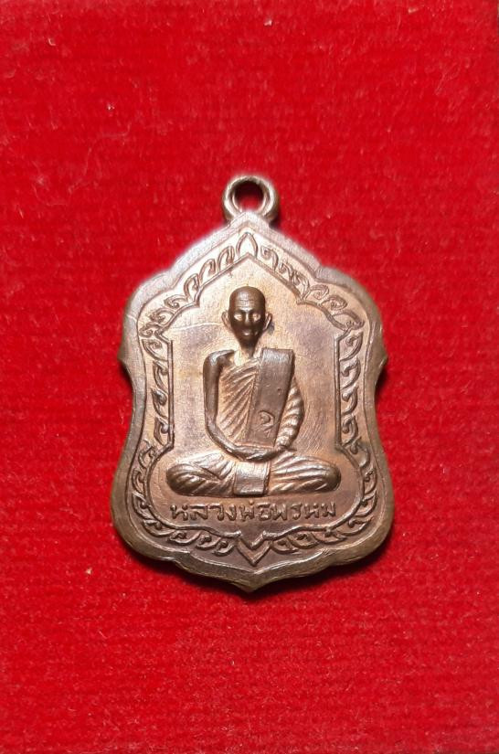 เหรียญผ้าป่า หลวงพ่อพรหม วัดขนอนเหนือ จ.อยุธยา ปี 2530 เนื้อทองแดงผิวปีกแมลงทับ พร้อมเลี่ยมเงิน สวยแชมป์ (แดง 2,500) |