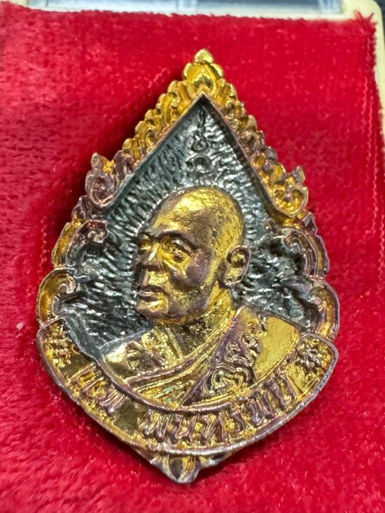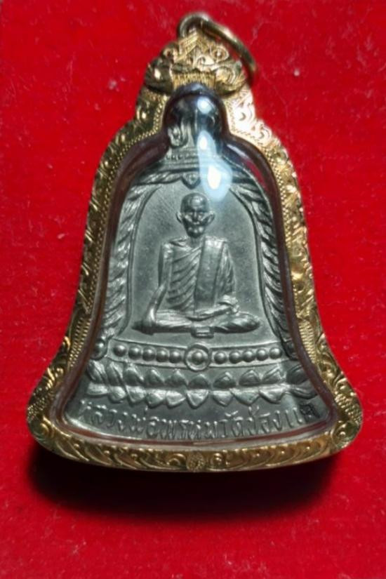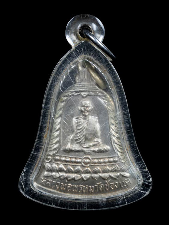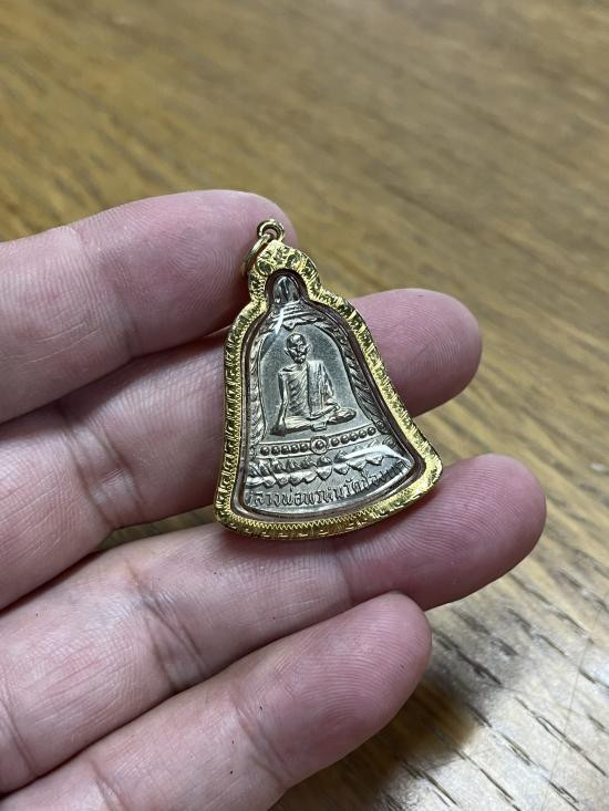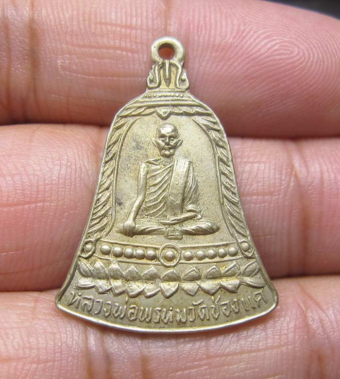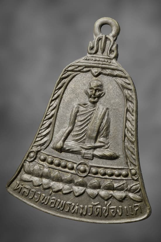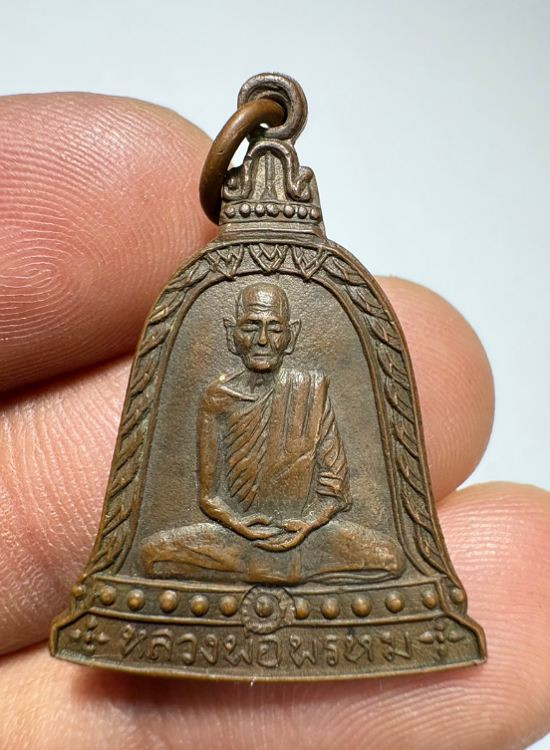 วัดใจ รูปเหมือนนิ้วกระดก หลวงพ่อพรหม วัดช่องแค ปี 2532 "ขอให้มั่งมี" เนื้อทองเหลืองระฆัง สังฆาฏิตอกโค๊ด พค |
