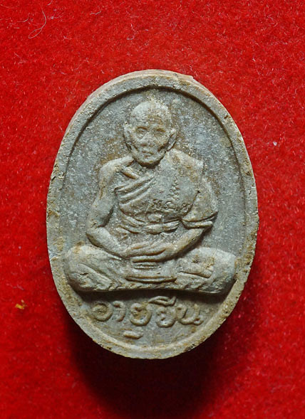 พระผงรูปเหมือนอายุยืน หลวงปู่สี วัดเขาถ้ำบุญนาค จ.นครสวรรค์ ปี ๒๕๑๗ เนื้อผงน้ำมันผสมชาญหมาก |