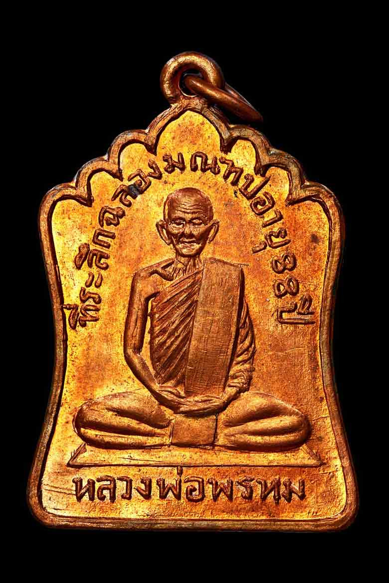 เหรียญรูปไข่หลวงพ่อพรหม วัดช่องแค จังหวัดนครสวรรค์ รุ่นที่สร้างใน ปี พ.ศ. 2515 เพื่อฉลองอายุครบ 87 ปี (นับเป็นรุ่น ครั้งที่ 2) พร้อมเลียมทอง |