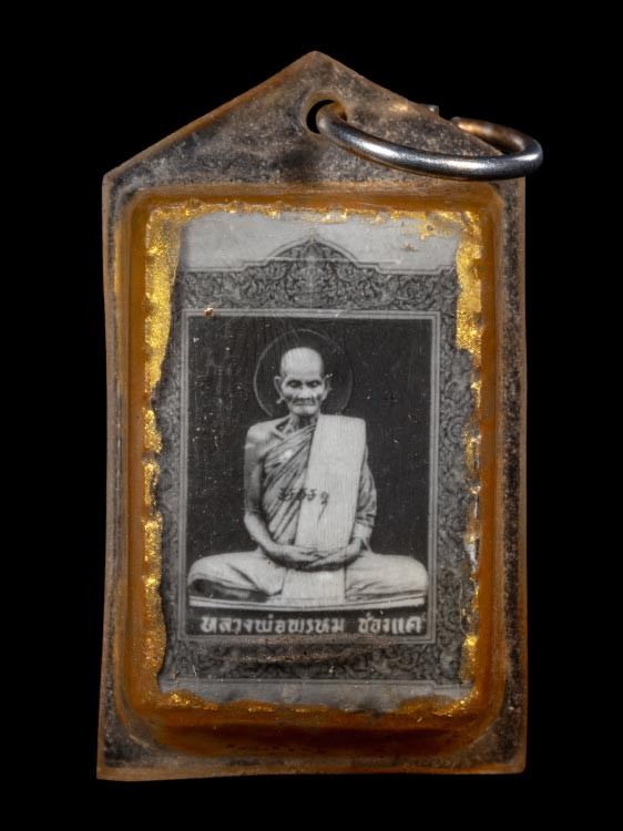 พระผงรูปเหมือน หลวงพ่อพนหม วัดช่องแค รุ่นฟ้าผ่า เนื้อสีน้ำตาล จัดสร้างปี2512 |