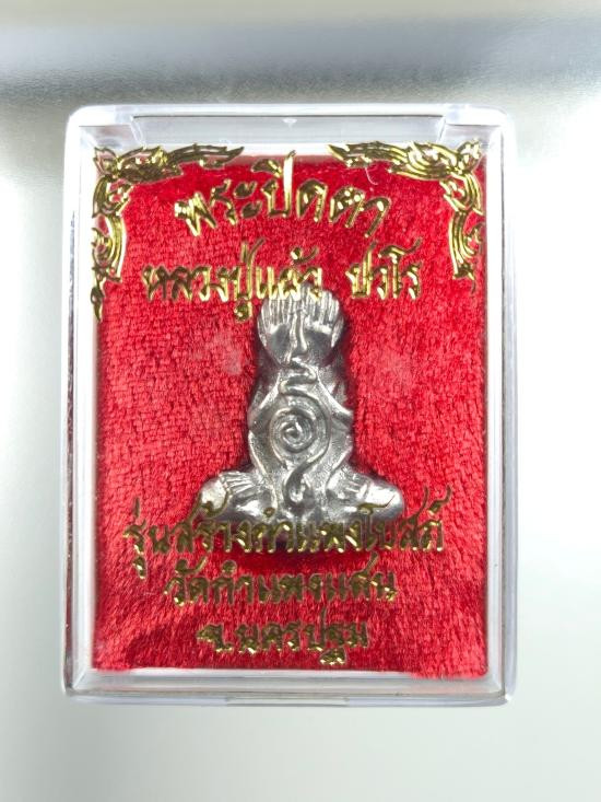 วัดใจ *** พระปิดตา หลวงปู่แผ้ว ปวโร รุ่นสร้างกำแพงโบสถ์ วัดกำแพงแสน เนื้อดีบุก ปี 2547 นครปฐม |