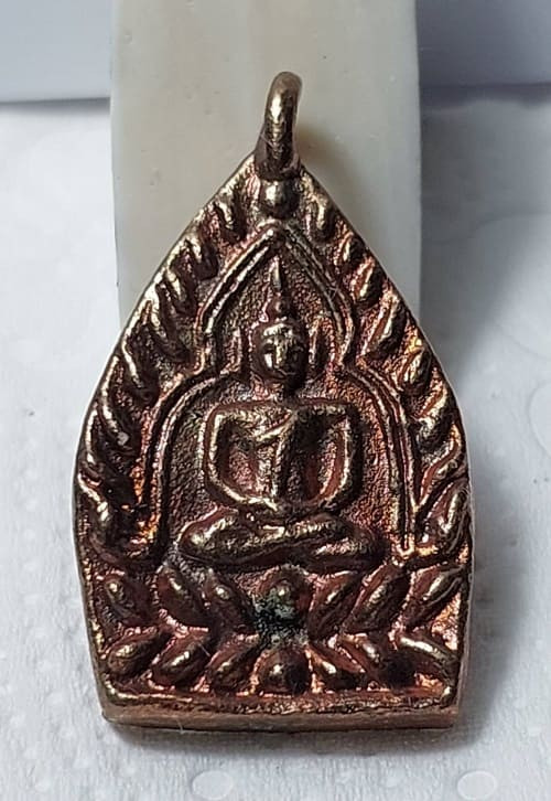 พระยอดธง หลวงพ่อน้อย วัดธรรมศาลา รุ่นสร้างโรงเรียน เนื้อทองเหลือง จ.นครปฐม ปี 2512 |