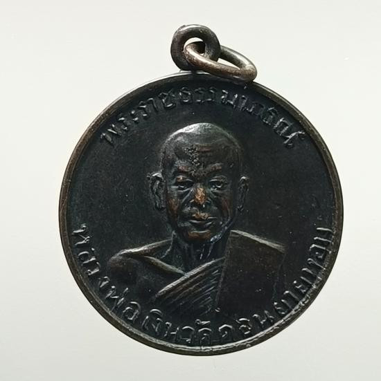 เหรียญระฆัง หลวงพ่อแช่ม วัดดอนยายหอม จ.นครปฐม รุ่นเงินทองมั่งมีอยู่เย็นเป็นสุข ปี 2528 เนื้อทองแดงรมดำ ตอกโค้ด |