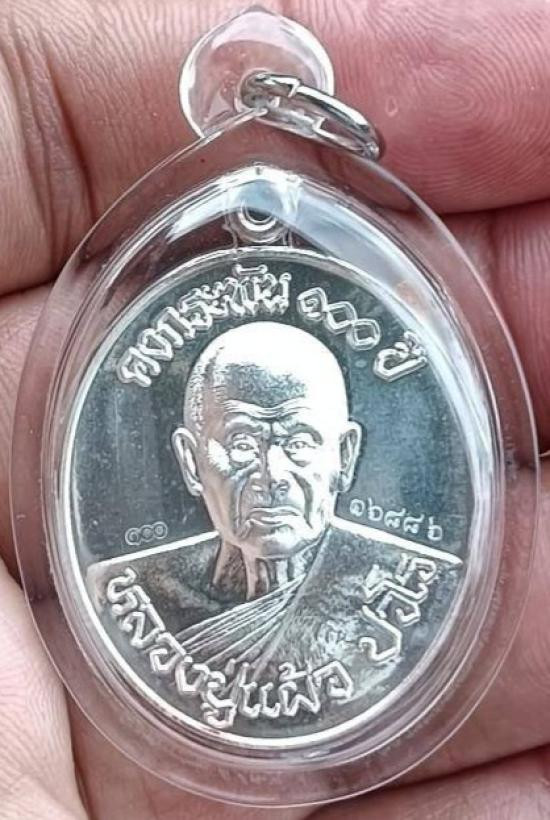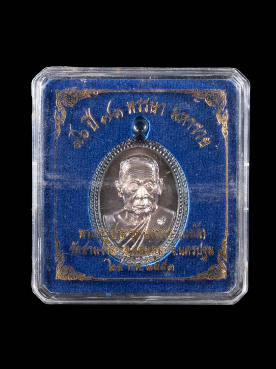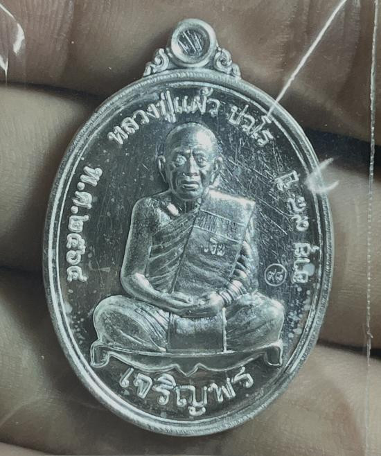 หลวงปู่แผ้ว วัดรางหมัน เจริญพรล่าง เนื้อเงิน กล่องครบ เลข1828 |