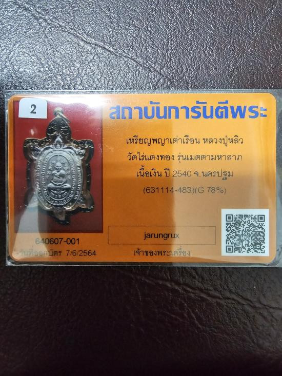 เต่าหลวงพ่อหลิว เนื้อเงิน สวยๆครับ พร้อมบัตรรับรอง |