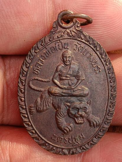 เหรียญเข็มกลัด หลวงพ่อเพิ่ม วาจาสิทธิ์ วัดสรรเพชร อ.สามพราน นครปฐม รุ่นเสือ ทองฝาบาตร |
