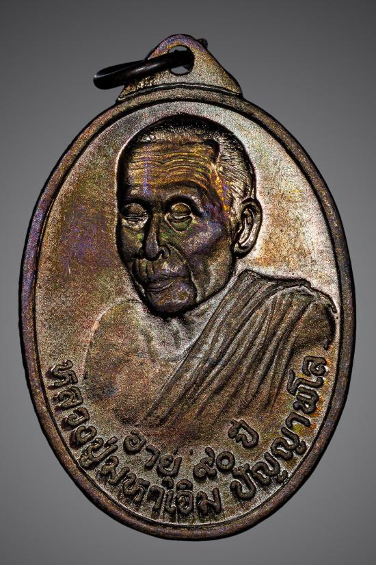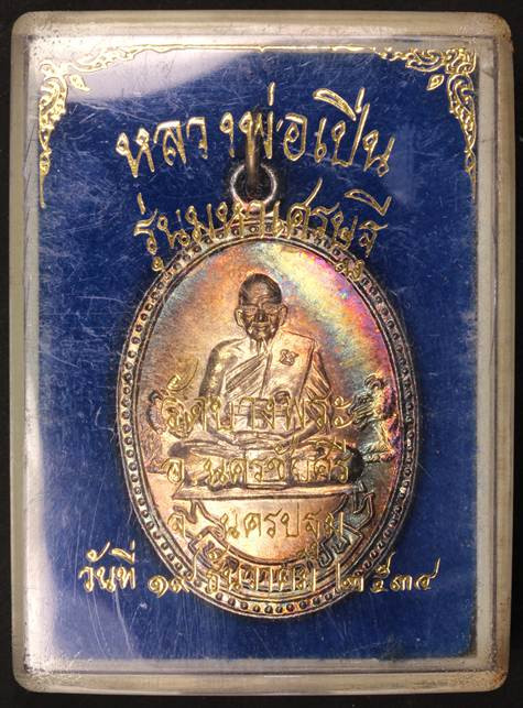 เหรียญรวงข้าว หลวงพ่อเปิ่น วัดบางพระ รุ่นร่มเย็น ปี 2537 เนื้อนวะ |