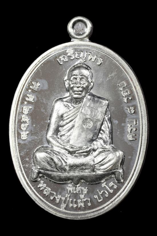 เหรียญแจกทานเนื้อทองฝาบาตร ที่ระลึกงานสิริอายุวัฒนมงคล หลวงปู่แผ้ว ปวโร วัดรางหมัน ปี 2557 กมายเลข 1314 มีกล่องแท้เดิมๆจากวัด |
