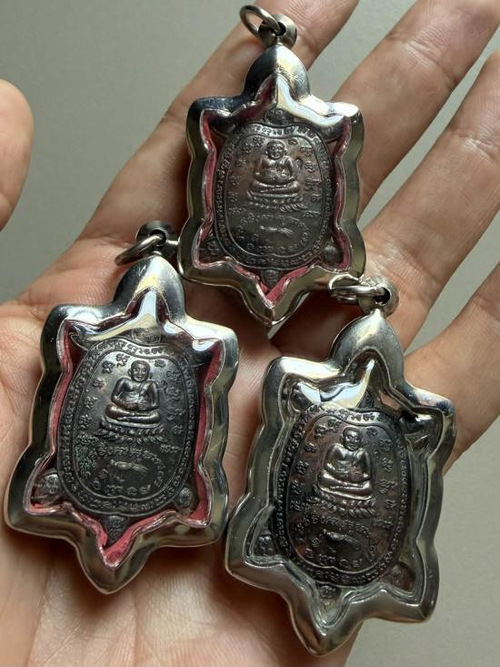 ล็อกเก็ตพญาเต่าเรือน หลังหลวงพ่อโสธร หลวงพ่อวัดบ้านแหลม หลวงพ่อไร่ขิง พิมพ์ใหญ่ หลวงปู่หลิว รุ่นปัจฉิมวัย วัดหนองอ้อ ปี ๒๕๔๓ |