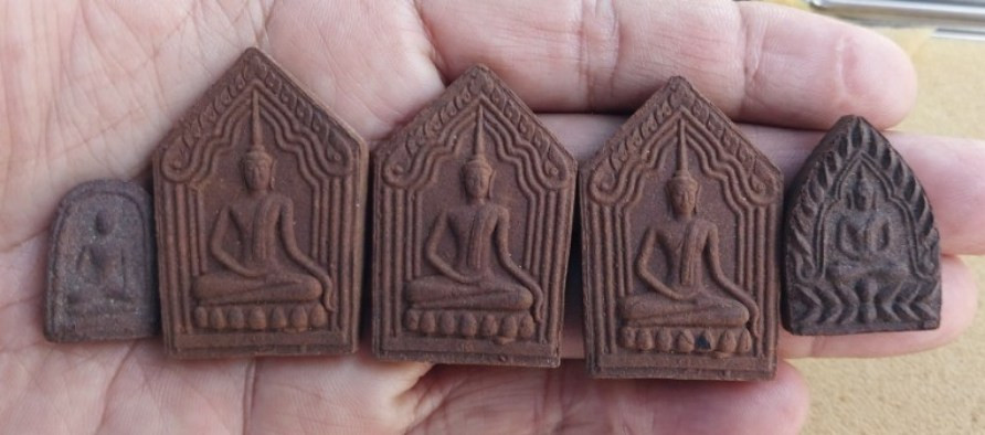 !!!!วัดใจ 9 บาท!!!! 5องค์ พระนั่งปรก ใบมะขาม รุ่นแรก หลวงปู่แผ้ว ปวโร เนื้อทองแดง ปี2547 ออกวัดกำแพงแสน |