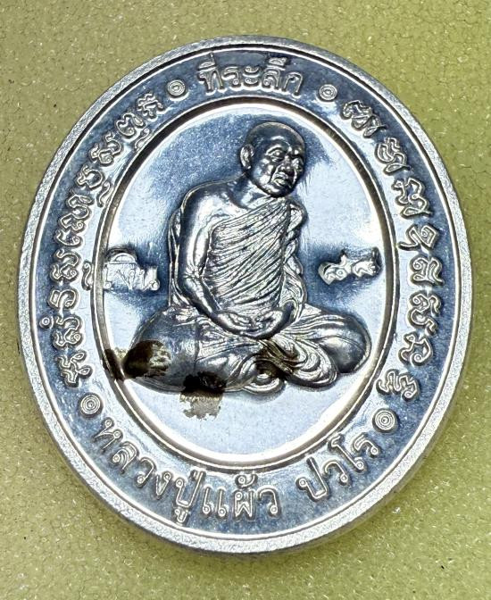 เหรียญกำแพงแก้ว หลวงปู่แผ้ว ปวโร เนื้อเงิน ปี2553 สร้างแค่299เหรียญ พิเศษมีพินธุของหลวงปู่แผ้วคะ สภาพสวยมากค่ะ |