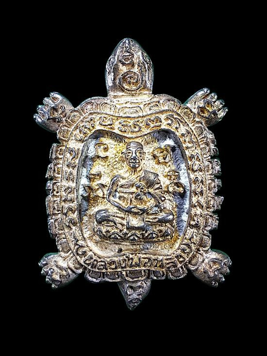 พญาเต่าเรือน รุ่นบูรณะพระราชวังสนามจันทร์ เนื้อกะไหล่ทองลงยา หลวงปู่หลิว วัดไร่แตงทอง พร้อมกล่อง แดงเคาะแรก |