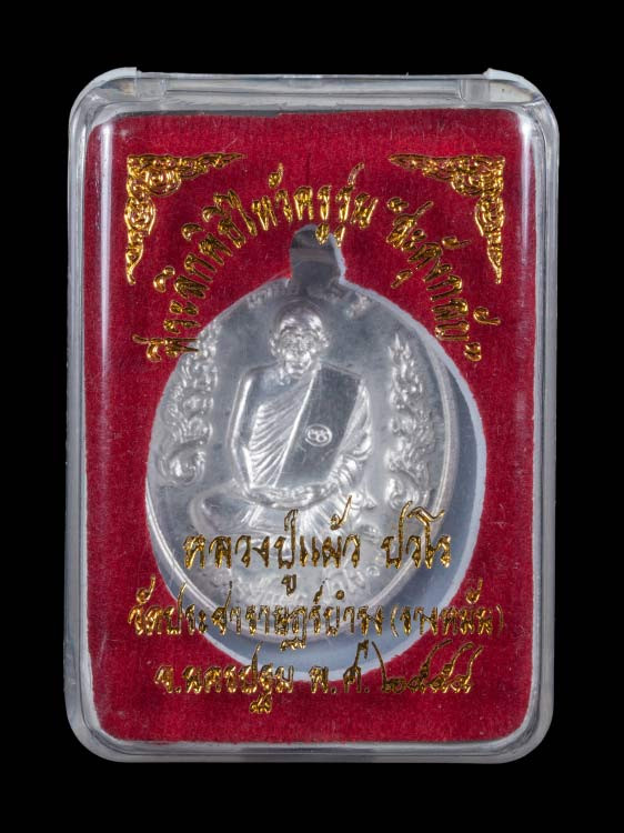 วัดใจ40 ล็อคเกตพญาเต่าเรือน หลวงปู่หลิว วัดไร่แตงทอง รุ่นสำเร็จจิต พิมพ์กลางหลังเงิน เลข583 มีกล่องเดิม บัตร g pra |