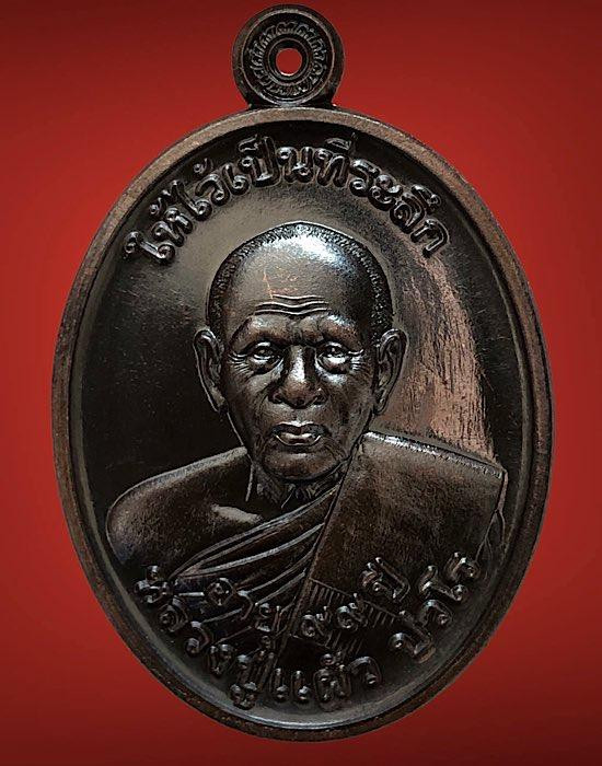 หลวงปู่แผ้ว ปวโร วัดรางหมัน เหรียญรุ่น เจริญพรบน วาระ 8 รอบ (เนื้อทองเเดง) พร้อมกล่อง |